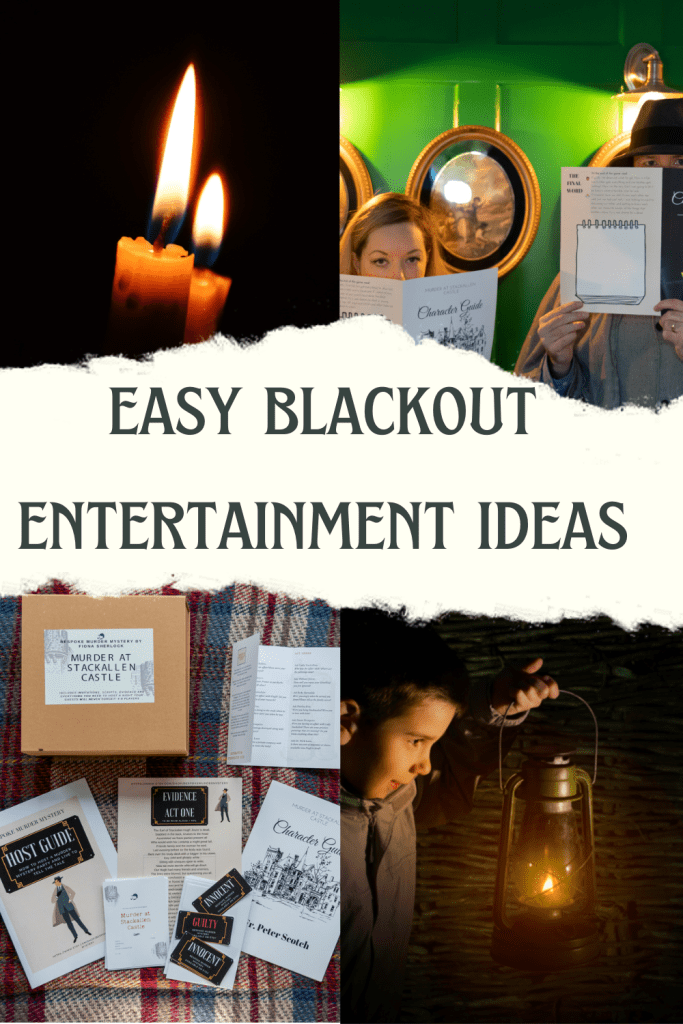 - Mystery detective game: You’ve seen it a thousand times in movies and books, the power goes out and next thing you know, there’s a murder victim! So why not play a candlelit mystery game? Just print in advance and stash with the candles and kerosene to keep the boredom at bay! You can even invite the neighbours over and make a party of it. Buy a printable blackout game on Etsy